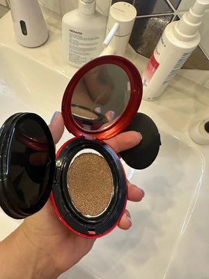 Press the cushion and dab the puff onto your skin for an even, natural application.