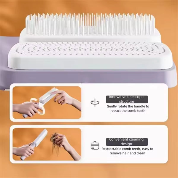 Unlike others, our brush offers retractable bristles, anti-static design, and a rotating handle for effortless detangling and smooth, shiny hair.